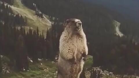 视频中的动物是土拨鼠,这个动物站立在山间大叫的场景出现在视频《